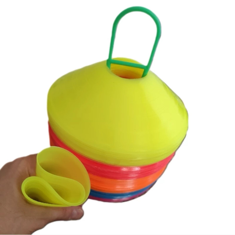 مانع تمرین بشقابی(کنز) این قابلیت را برای مربی ایجاد میکند تا در مدت زمان و فضای محدود ، تمرینات متفاوتی را سازماندهی کند . در نتیجه بازدهی و عملکرد تیمی و فردی بازیکنان بهبود می یابد . یکی از مشکلاتی که مربیان فوتبال یا باشگاه که در زمینهای چمن طبیعی فعالیت میکنند با آن مواجه هستند ، عدم قابلیت دیدن مخروطها از فواصل دور توسط بازیکنانشان است . مانع تمرین در رنگ مختلف ، قابلیت دیده شدن آن را از فواصل دور برای بازیکنان محقق میسازد و در حین اجرای تمرین ، بازیکنان با سردرگمی موجه نخواهند شد . مانع ها در قالب رنگهای متفاوت و براق تولید گردیده اند تا از زمین تمرینی و سایر تجهیزات تمرینی استقرار یافته ؛ تمایز داده شود . رنگهای نارنجی ،آبی ،قرمز،سرخابی و زرد فسفری این محصول علاوه بر تمایز آنها با بخشهای دیگر تمرینی ، محیطی شاد را نیز برای بازیکنان ایجاد میکند . شکل گنبدی این قیف تمرینی باعث میشود تا در صورت افتادن و زمین خوردن بازیکنان بر روی آن ، آنها را دچار مصدومیت نکند . از سوی دیگر شکل طراحی و جنس مرغوب و انعطاف پذیری آن باعث میشود تا این قیف تمرین بر اثر ضربه آسیب نبیند.