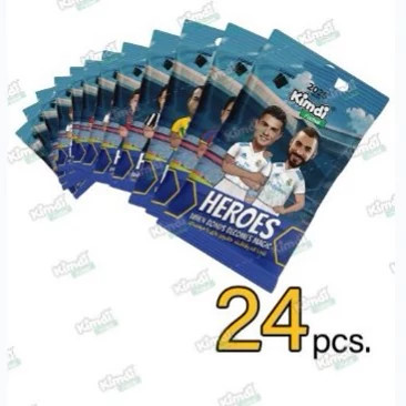 بسته های 24 تایی کیمدی فوتبال 2026 طرح Heroes برای اون هوادار دو آتیشه فوتبال که میخواد کلکسیونر بشه ... شامل 2 کارت کلکسیونی حداقل یکی از کارتها از نوع Advance، Premium یا Signature دارای 1 مینیفیگور بازیکن 2 برچسب کارتی ویژه، 1 بروشور اختصاصی نسخه HEROES * QR Code پشت کارتها برای تماشای ویدیو بیوگرافی بازیکنان