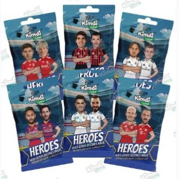 بسته های 6 تایی کیمدی فوتبال 2026 طرح Heroes برای اون هوادار دو آتیشه فوتبال که میخواد کلکسیونر بشه ... شامل 2 کارت کلکسیونی حداقل یکی از کارتها از نوع Advance، Premium یا Signature دارای 1 مینیفیگور بازیکن 2 برچسب کارتی ویژه، 1 بروشور اختصاصی نسخه HEROES * QR Code پشت کارتها برای تماشای ویدیو بیوگرافی بازیکنان