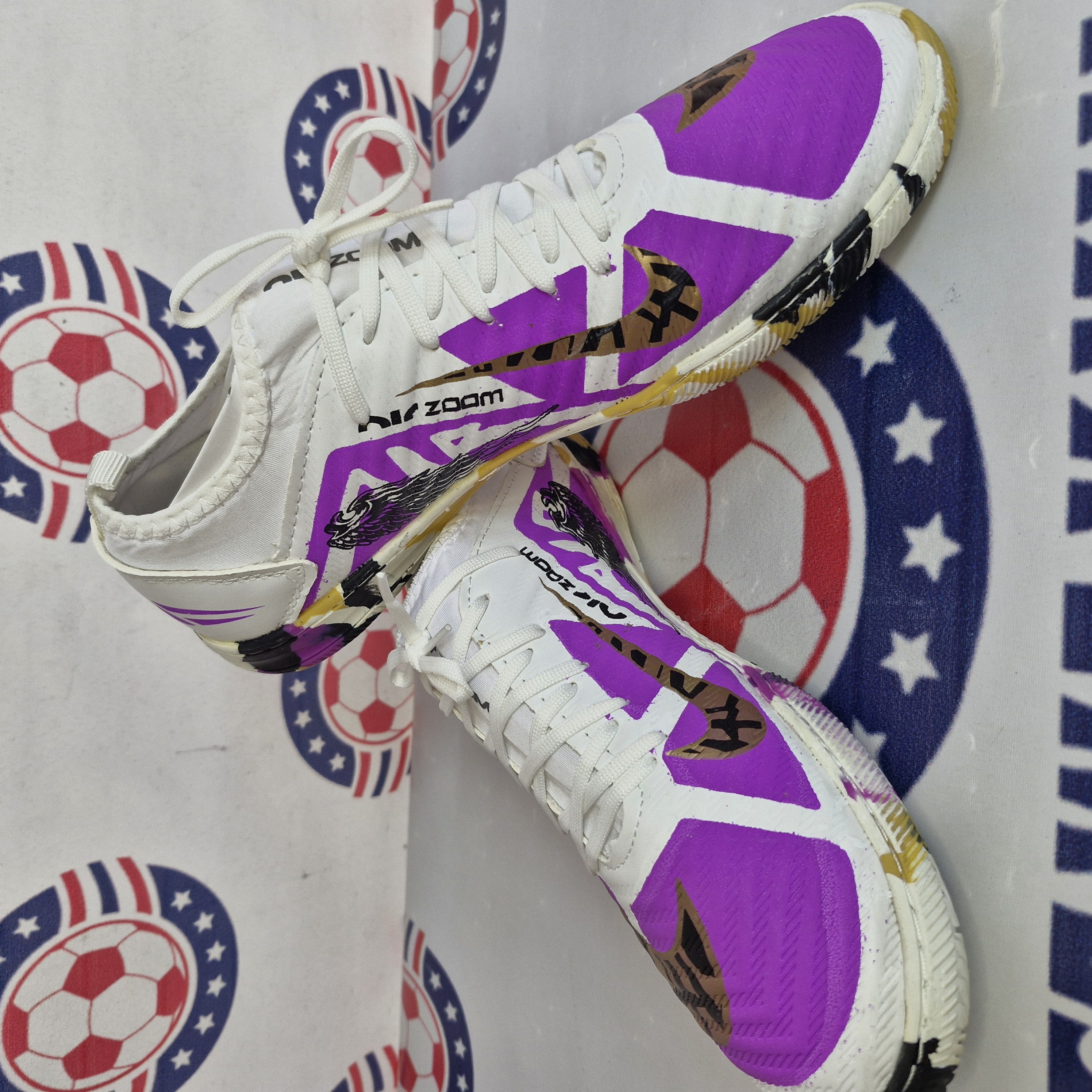 ✅️ کفش سالنی فوتسال نایک مرکوریال سایز 35 تا45 خیلی سبک و نرم و منعطف و نیم جورابی هست و فیت پا . دارای نخ های بلند و ابریشمی و محکم . چسبندگی زیره این کفش 100% عالی و ترمز دار و صدادار و و رویه این کفش خارجی و نرم و سبک هست . کاملا دور دوخت و داخل دوخت هست با یک کفی محکم . رنگ و طرح کفش هم که زیبا وجز بهترینه 😊