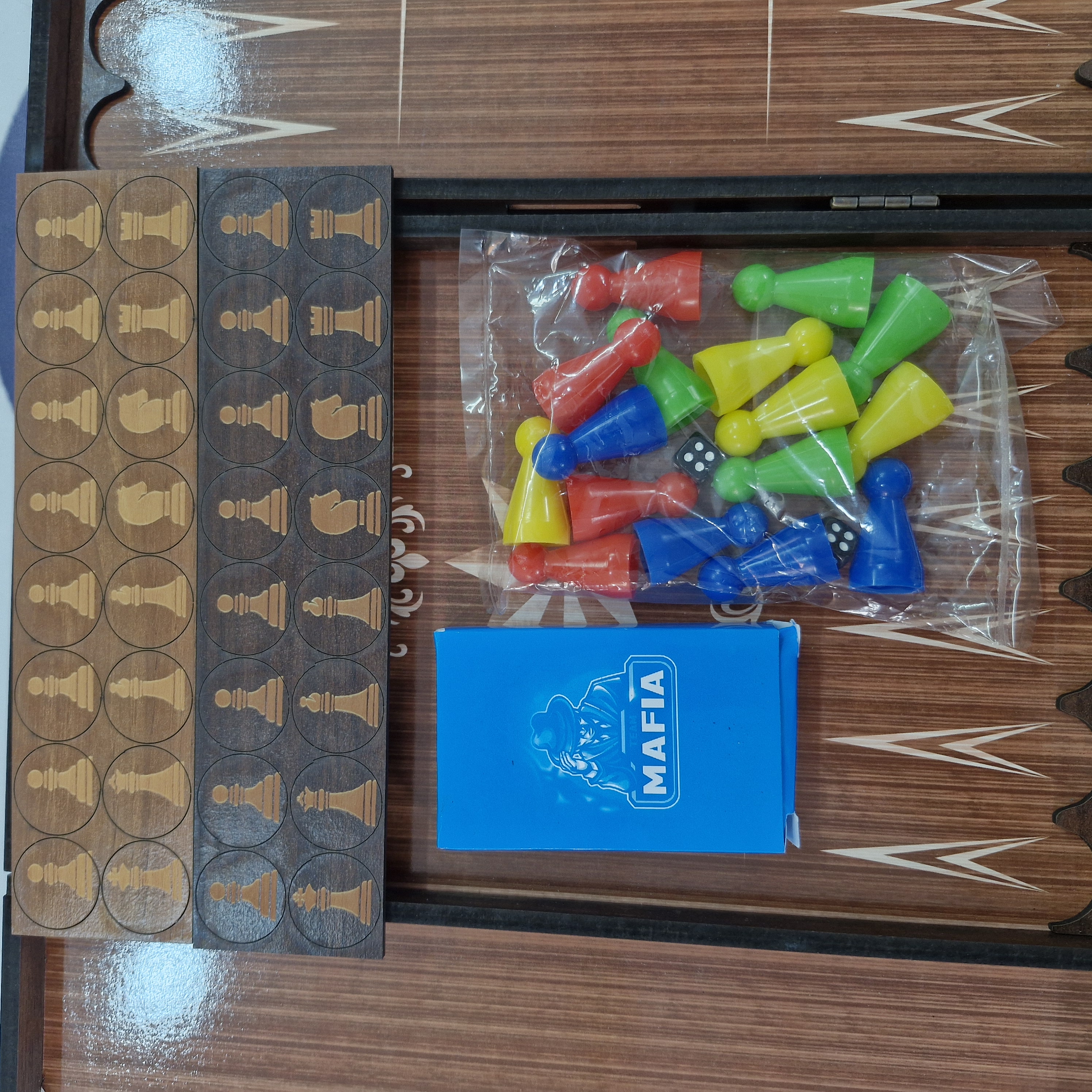 مهره های تخته و شطرنج / تاس / مهره منچ و مارپله / کاور چرمی / کارت های مافیا