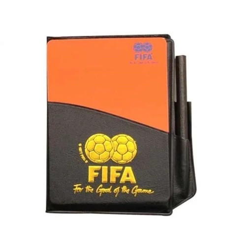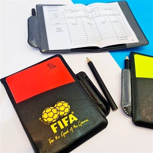 کارت داوری طرح فیفا به همراه برگه ثبت وقایع بازی و مداد